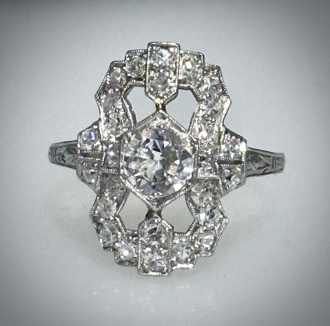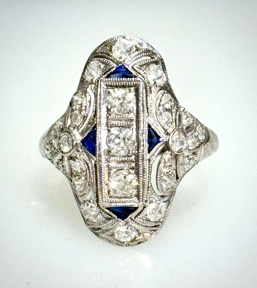 1 Carat Art Deco Panel Ring with Sapphire Accents