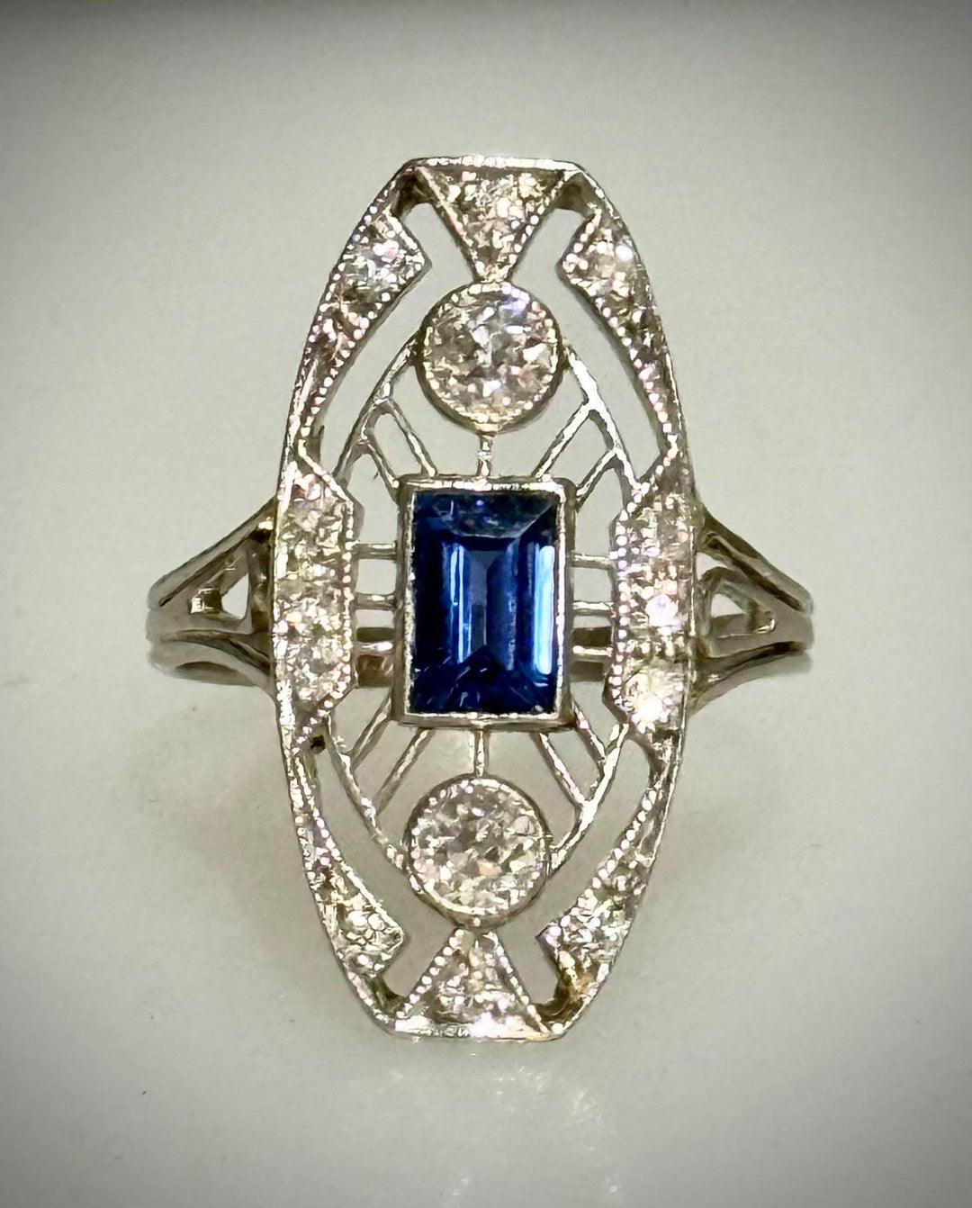 1/2 Carat Platinum Art Deco Sapphire Ring