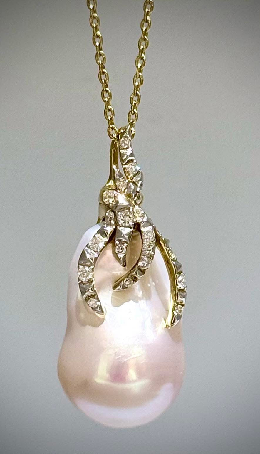 Art Deco Pendant with Champagne Center Diamond and Onyx Frame