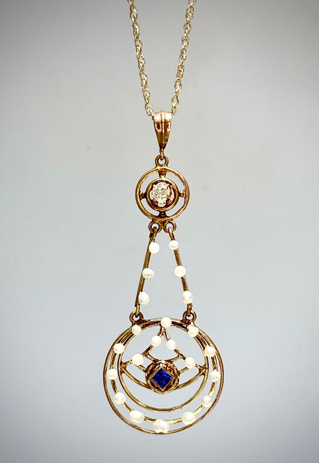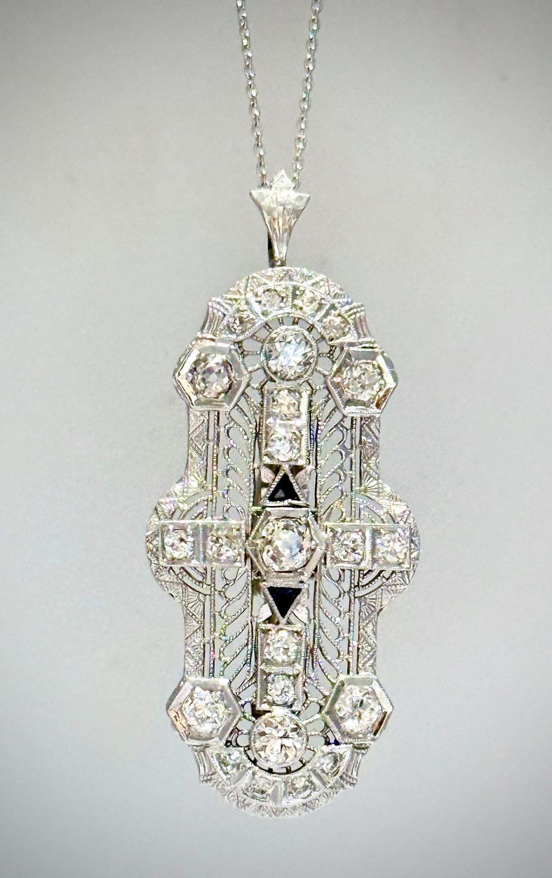 2.85 Carat Art Deco Pin Pendant with Sapphires