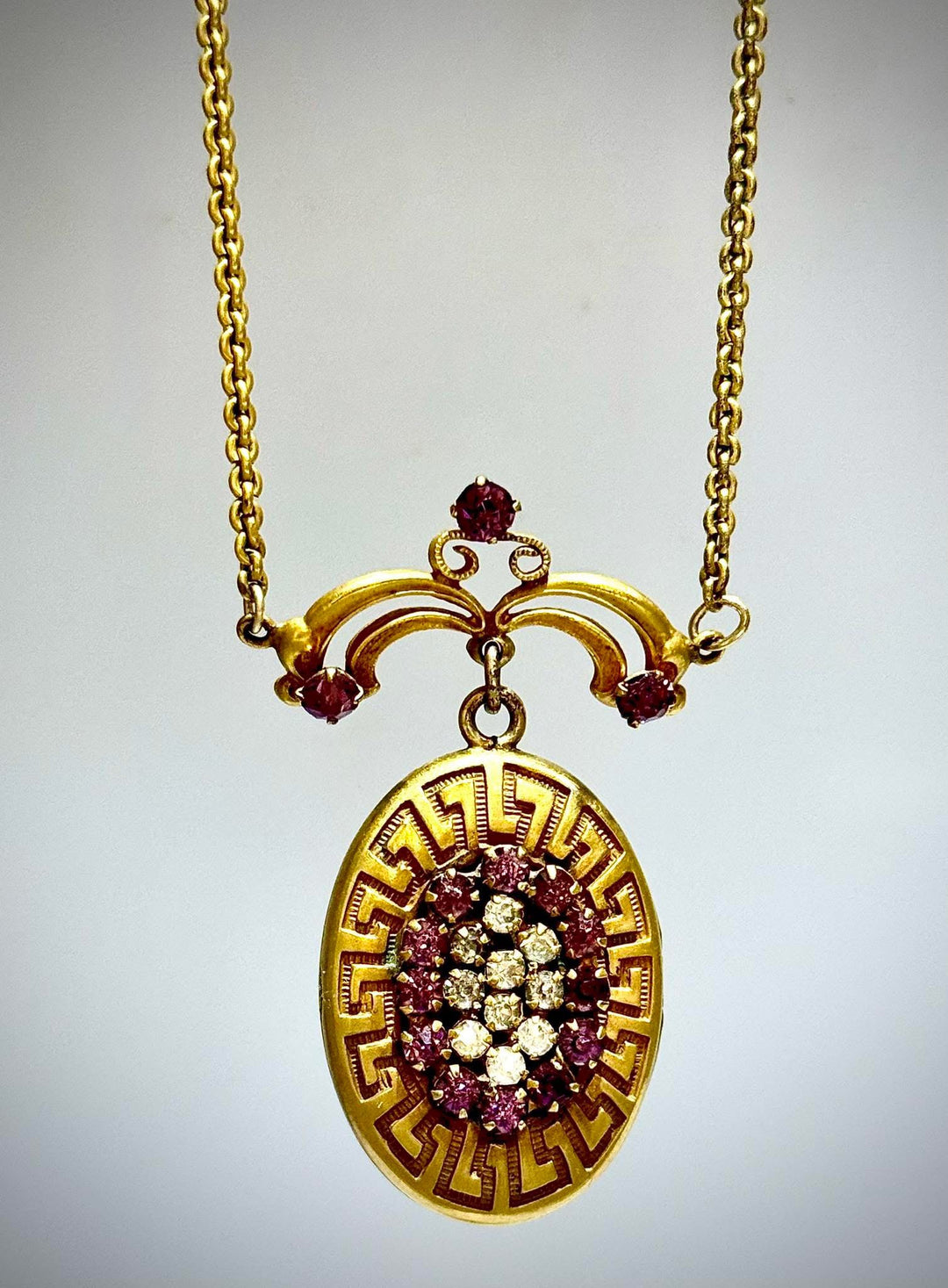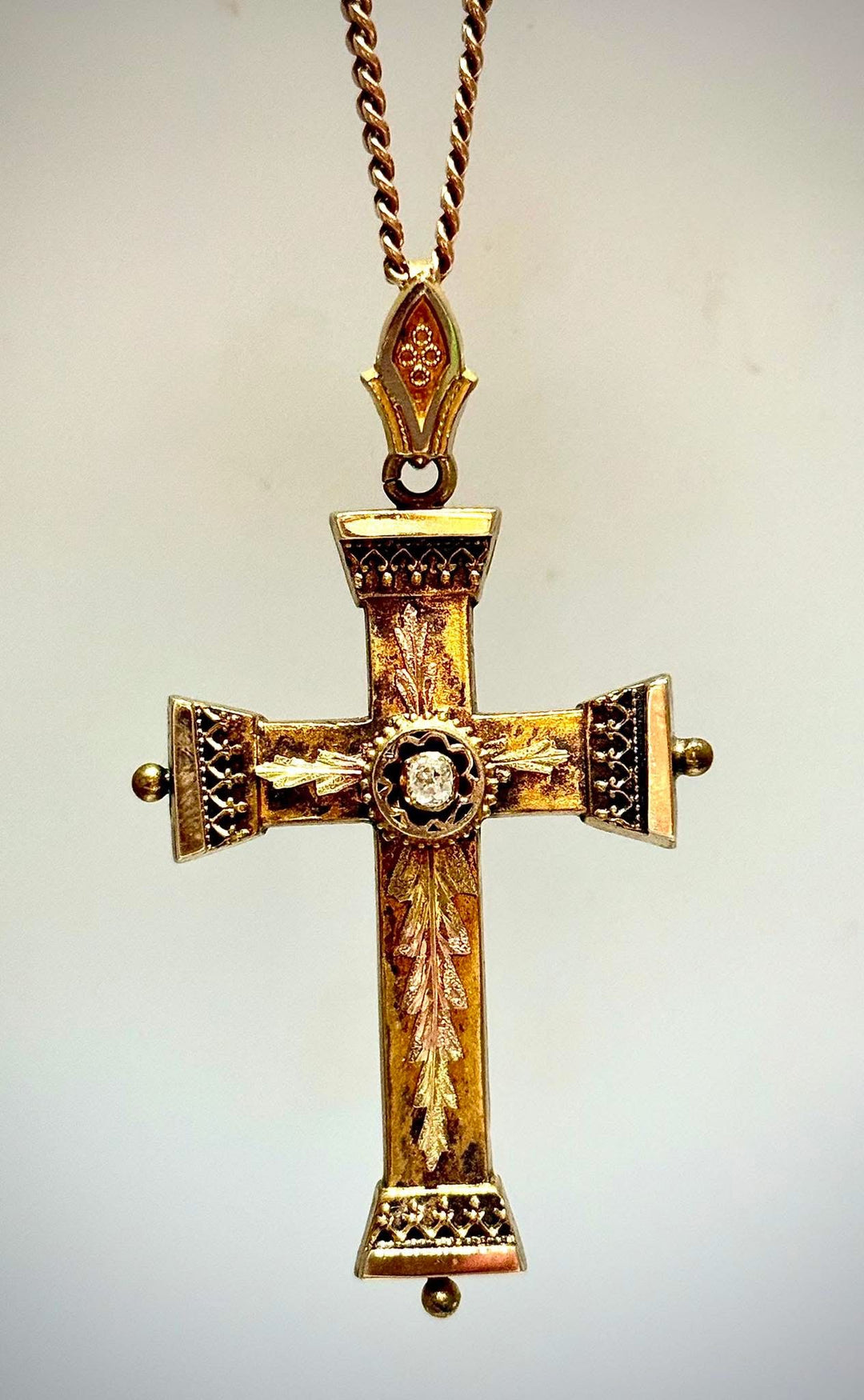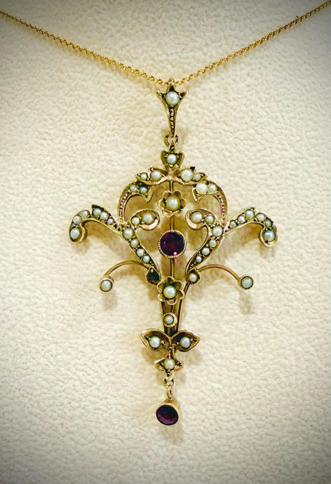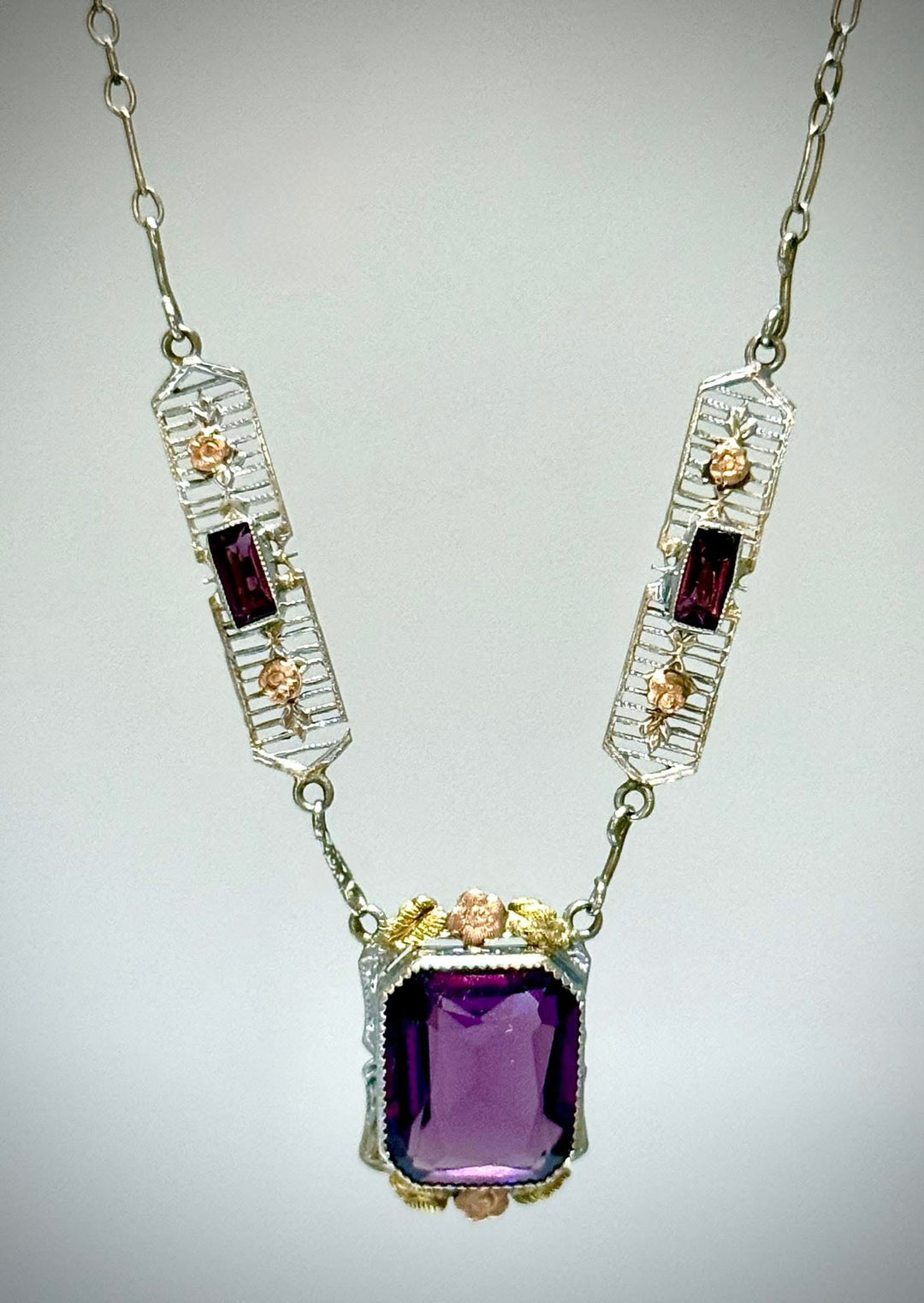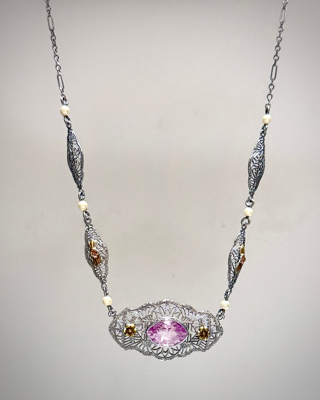 Two-Tone Filigree Pendant with Central Pink Synthetic Spinel